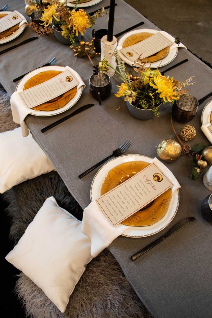 Putting together a seating plan and writing out some quick place cards is one of the simplest ways to elevate your Thanksgiving and make the entire evening feel more classy, put together, and intimate. When guests see a place setting just for them, it makes them feel valued and like you’re glad that they are here. Plus, the right seating arrangement helps the conversation flow for hours and encourages your guests to mingle with more than their usual crowd.