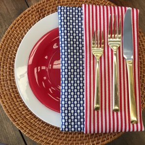 The 4th of July is just around the corner! Are you ready to host your family and friends? We love this look because it showcases the classic American look. A wood table is transformed with patterned napkins that nod to the flag. A wicker charger and lanterns used as a center